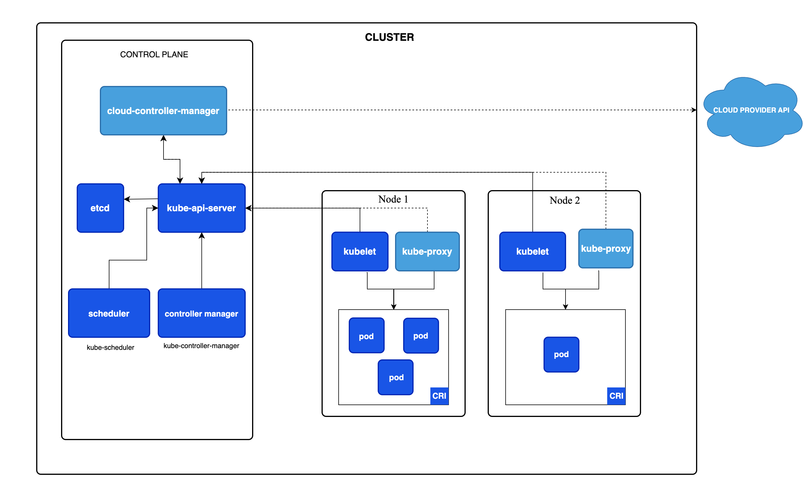 - Kubernetes (K8s): Originally developed by Google and now maintained by the Cloud Native Computing Foundation (CNCF), Kubernetes is the industry-standard orchestration platform. It manages containerized applications at scale with features like automatic scaling, self-healing, rolling updates, and declarative configuration.